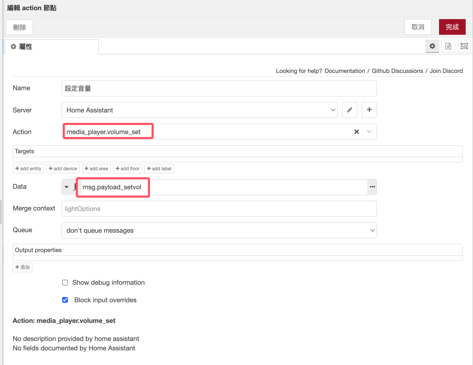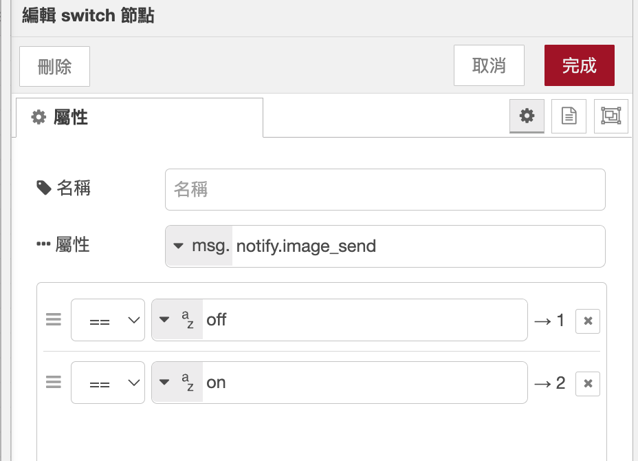 看是要傳送純文字,還是圖片, 還有TTS是否播放, 正常音量設定, 夜間時段音量設定。