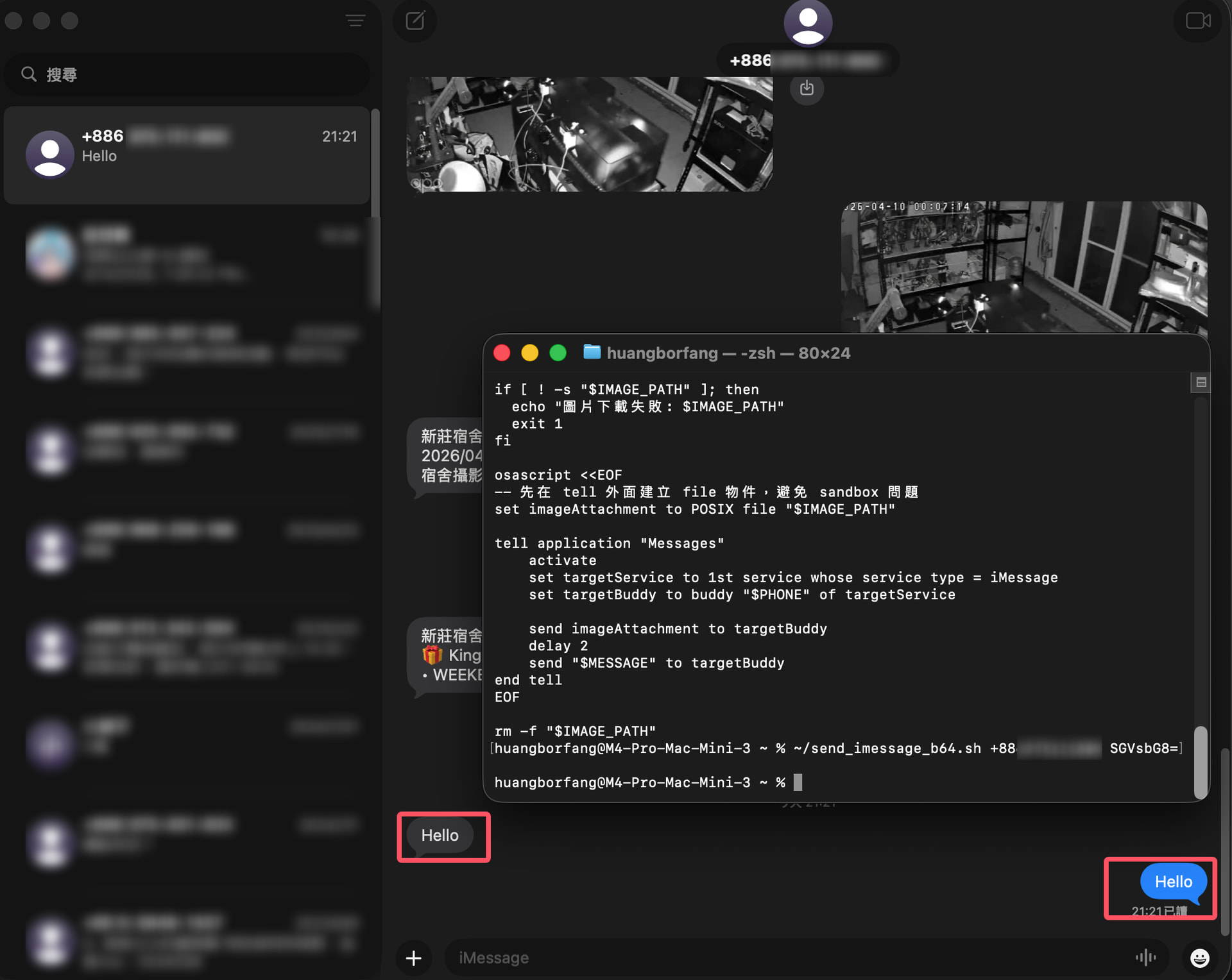 /你放檔案的路徑/send_imessage_b64.sh +8869XXXXXXXX SGVsbG8=