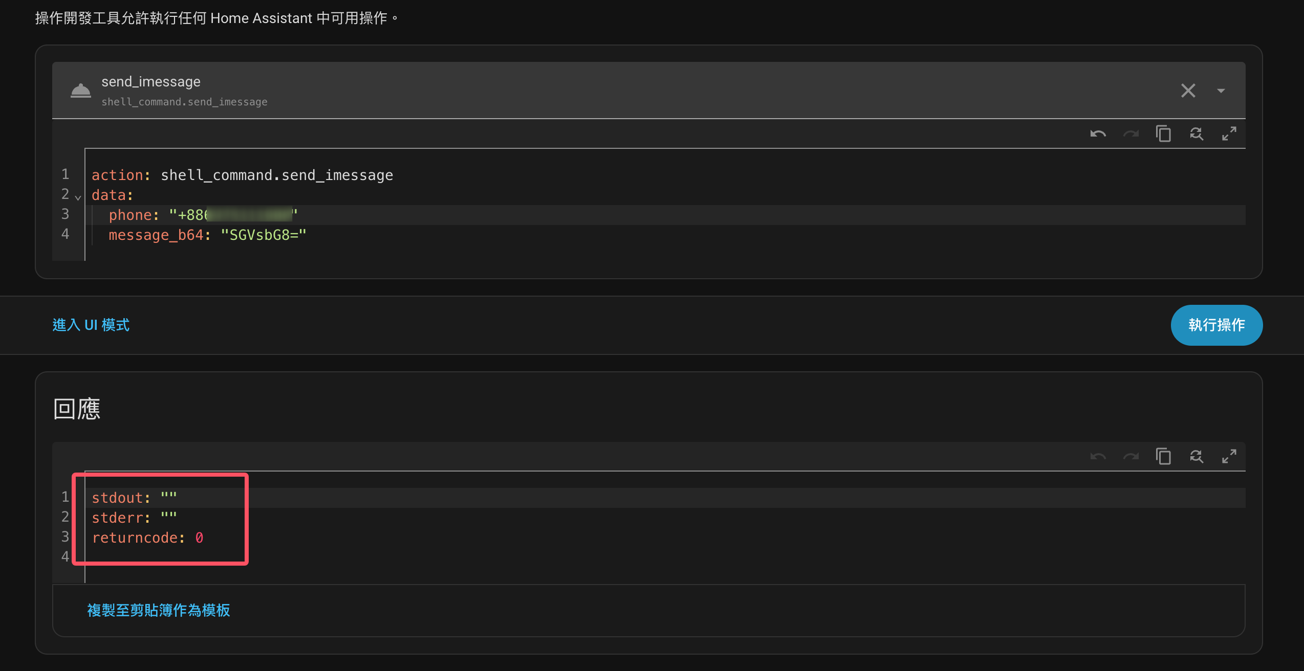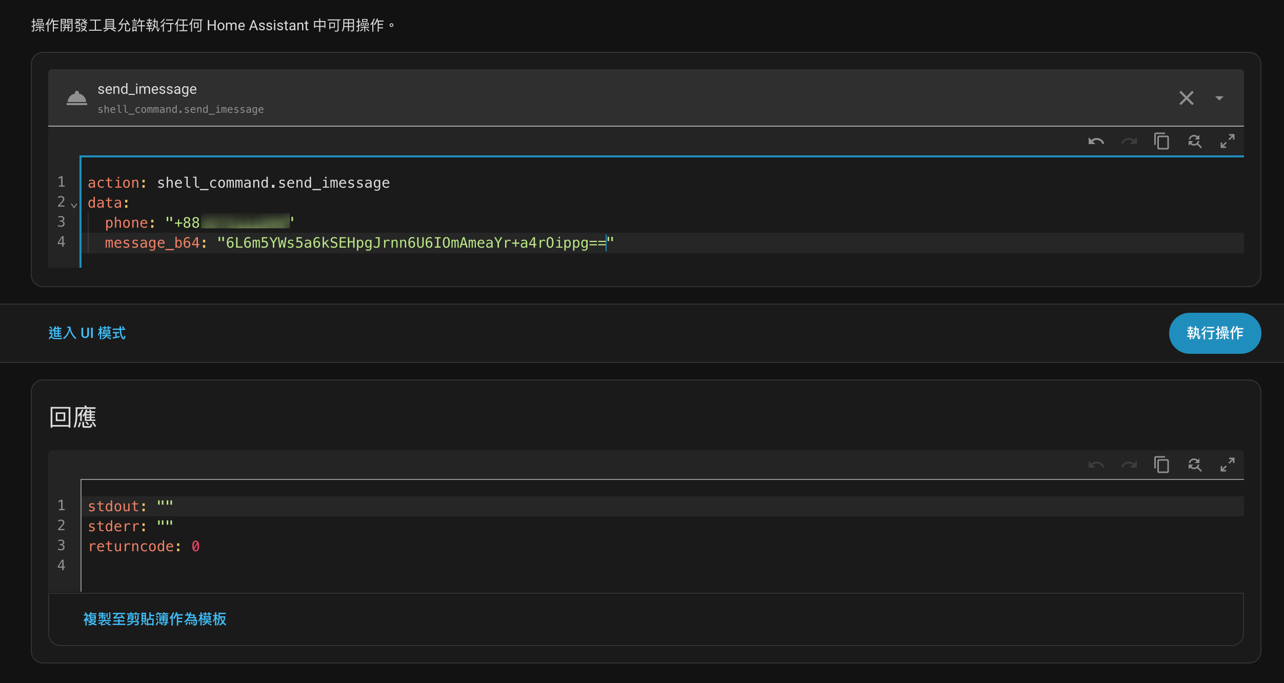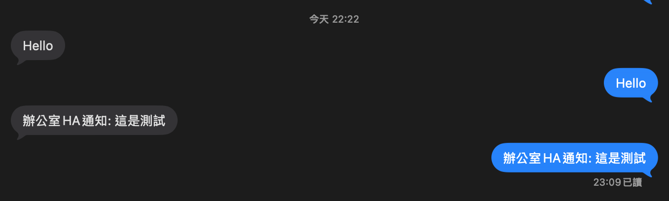 到這邊我們從HA透過SSH傳送訊息到Mac 發送iMessage已經完成