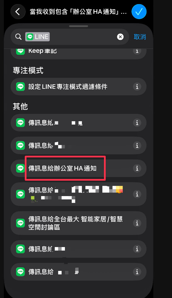 往下拉找到 Line 然後在其他找到你剛剛創建的群組